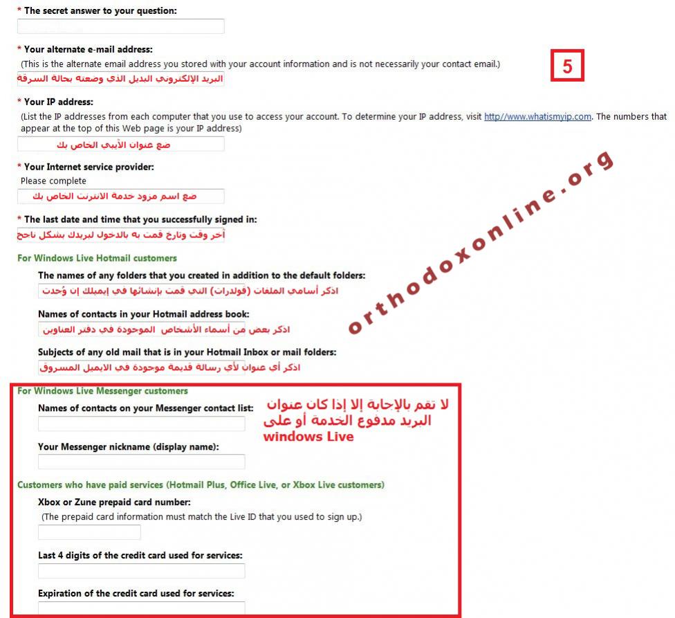 فما قلك غير انو تراسل الشركة وتعطيهم معلومات بتأكد ملكيتك للبريد الالكتروني وانو انسرق منك... هي المعلومات لازم تكون دقيقة جداً، مثل التاريخ اللي عملت فيه البريد، آخر مرة بالتاريخ والتوقيت قدرت تفوت عليه، أسماء الفولدرات الموجودة فيه، أسماء الاتصالات، عنوان لايميل قديم وصلك عليه... الخ.. وإذا ما بتتذكر كتير حاول تتصل مع أصحابك اللي بيراسلوك على الايميل وممكن هم يساعدوك (يعني ممكن يشوفوا الرسائل المرسلة في ايميلهم الك وهيك بيعطوك عنوان شي ايميل قديم انبعت منهم على ايميلك المسروق)