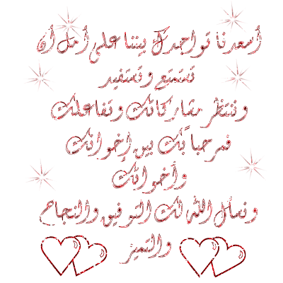 أخوتنا الأحباء أهلا وسهلا فيكم وناطرين مشاركاتكم وتفاعلكم معنا عن قريب كتير