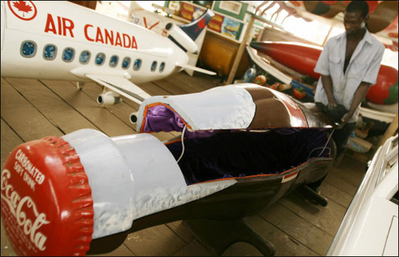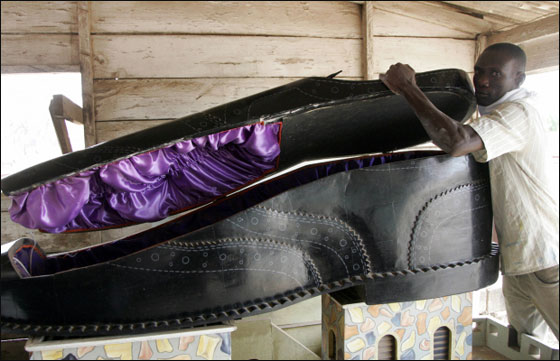 يفضل كل شخص ان يقتني حسب ذوقه مثلا سيارة او هاتف نقال ولكن ليس نعش اخرته، اذ أصبح بالإمكان اختيار النعوش والتوابيت بحسب الذوق الشخصي، منها على شكل دجاجة او سمكة عملاقة او حتى سلحفاة. والعمل في تجارة مثل الموت، تجعل صانع النعوش إريك أجيتي أنانغ وعماله، مشغولون جدا، في تحضير النعوش بحسب الطلب.