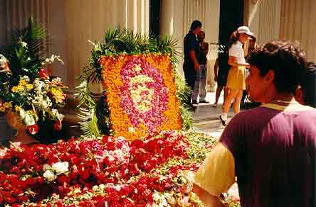 قاموا بغسله وتنظيفه كي لا يشك أحدا في هويته. لقد قتلوا جيفارا الإنسان، ولكن تفاهتهم وحماقتهم أدت إلى ولادة جيفارا الشهيد، الذي هو أقوى من الموت والعذاب، فقد قالت سوزان أوسينغا إحدى ممرضات المستشفى الذي أودع فيه بعد اغتياله عن مشاهدتها في تلك المناسبة ما يلي: كانت ملامحه شبيهة جدا بملامح السيد المسيح، لهذا ما زال الكثير من الفلاحين والهنود في بوليفيا يقيمون القداس حتى اليوم على روح جيفارا قائلين أنه يحقق المعجزات.