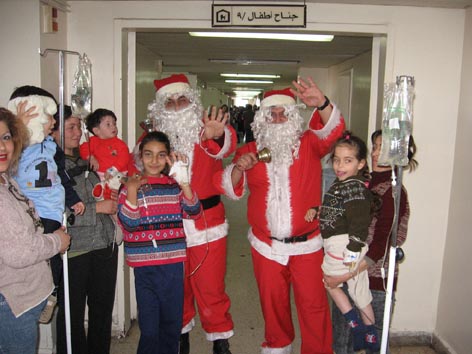 و بابا نويل لا ينسَ أطفالنا في مشفى الباسل بطرطوس قسم الأطفال حيث يذهب و يقدم لهم هدايا رمزية و معنوية لتبقى البسمة على وجوههم و وجوه أهاليهم