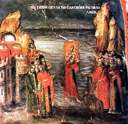 في يوم من الأيام أتى شاب إلى الكنيسة لتكريم أيقونة والدة الإله. وإذ اقترب منها، أخذ وجه العذراء القدّيسة، فجأة، باللمعان وقوة غير منظورة طرحته أرضاً. فلمّا عاد إلى نفسه، اعترف أنه كان يحيا بعيداً عن الله وبأنه يتعاطى الشعوذة. وإثر التدخّل العجائبي لوالدة الإله، غيّر الشاب مسلك حياته وغدا مسيحيّاً تقيّاً.