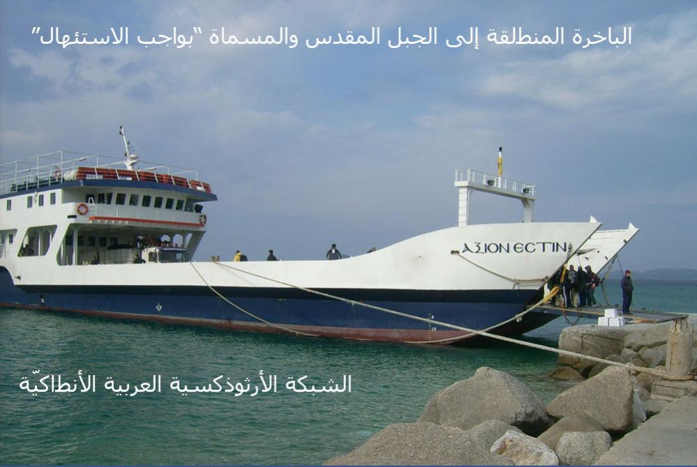 من مدينة الأورانوبّولي وفي موعد محدد تبدأ الباخرة المسماة "بواجب الاستئهال" -أو الباخرة المسمّاة على اسم القديس بندلايمون- بمسيرها على محاذاة الجبل المقدس.